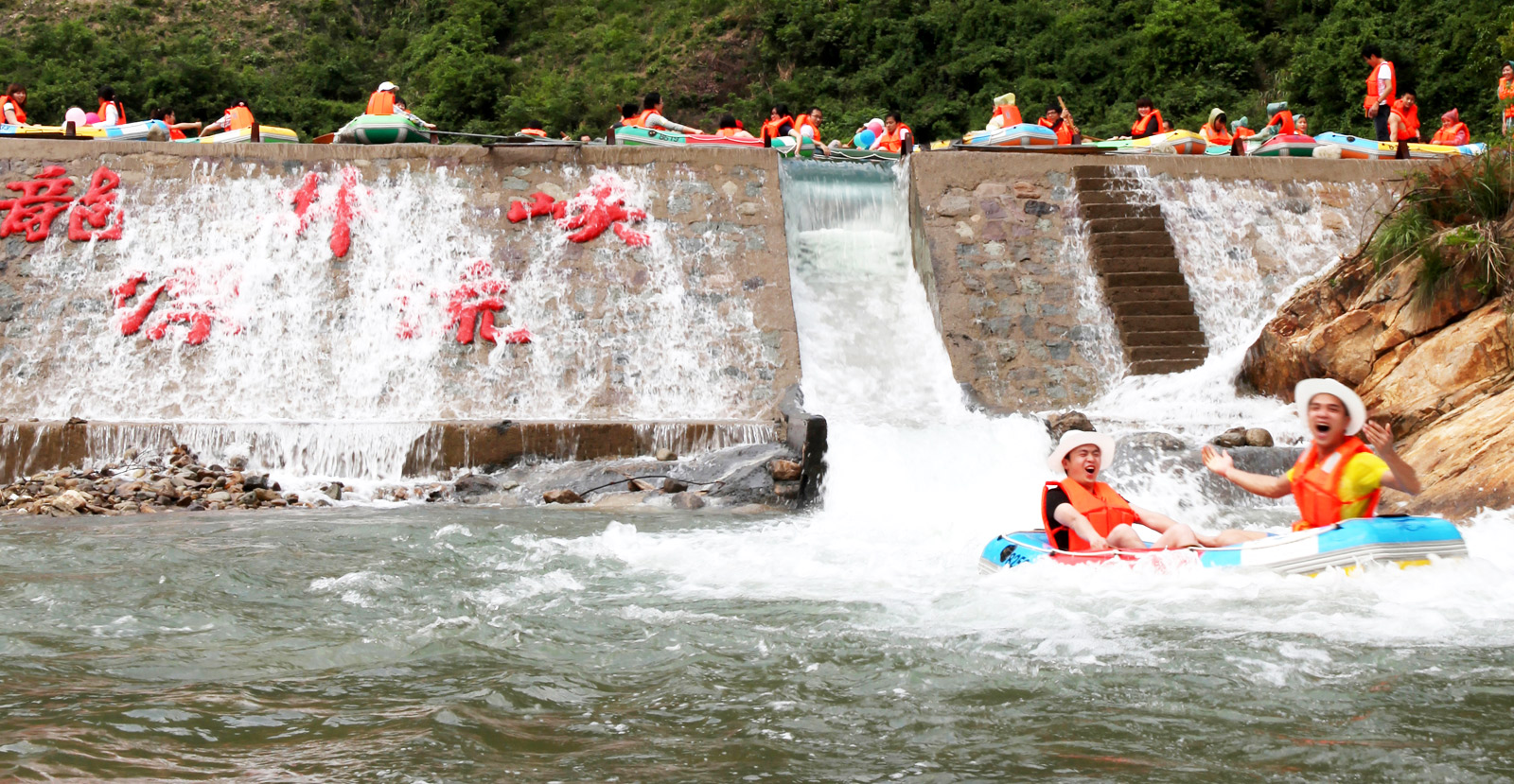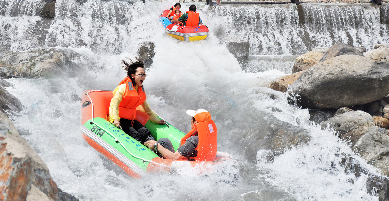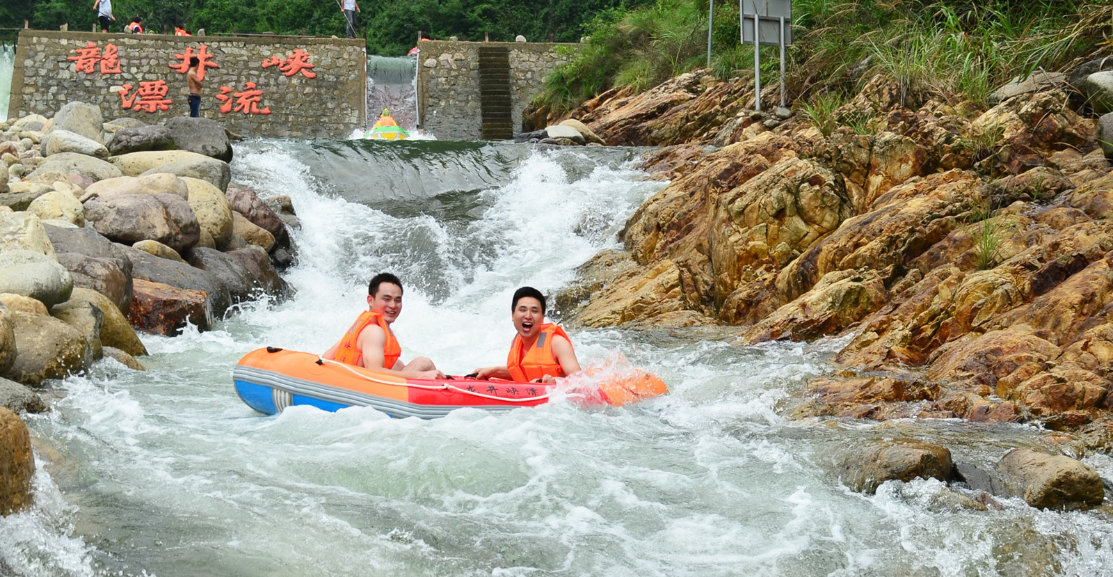 激情漂流全長3公里,首尾落差128米,俯沖水壩3-5米不等,漂流全程一個半小時左右。