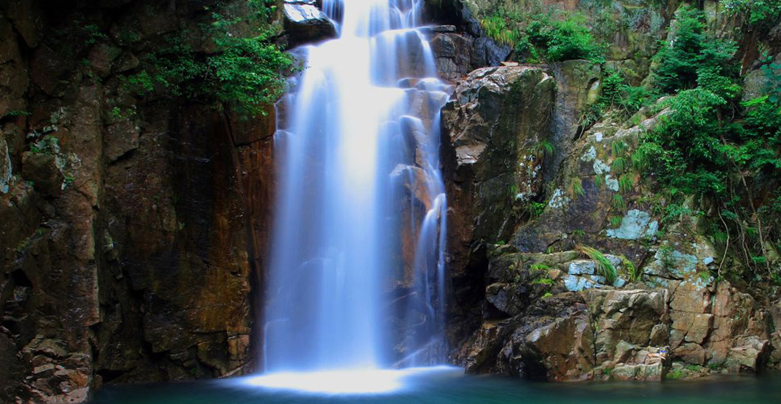 浙西大龍灣景區(qū)綠樹成蔭,瀑布成群,溪水清澈見底。橫空出世的摩天巨石,